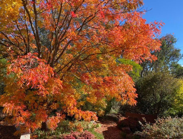 Back in May, our Chinese pistachio tree in the front garden was lighting up the house, with its fluorescent red and yellow leaves spreading above and below. It was gorgeous. A bright, flaming tree was also a reminder that I need to do more to prepare the house and garden for a bad fire season. ... Continue Reading →