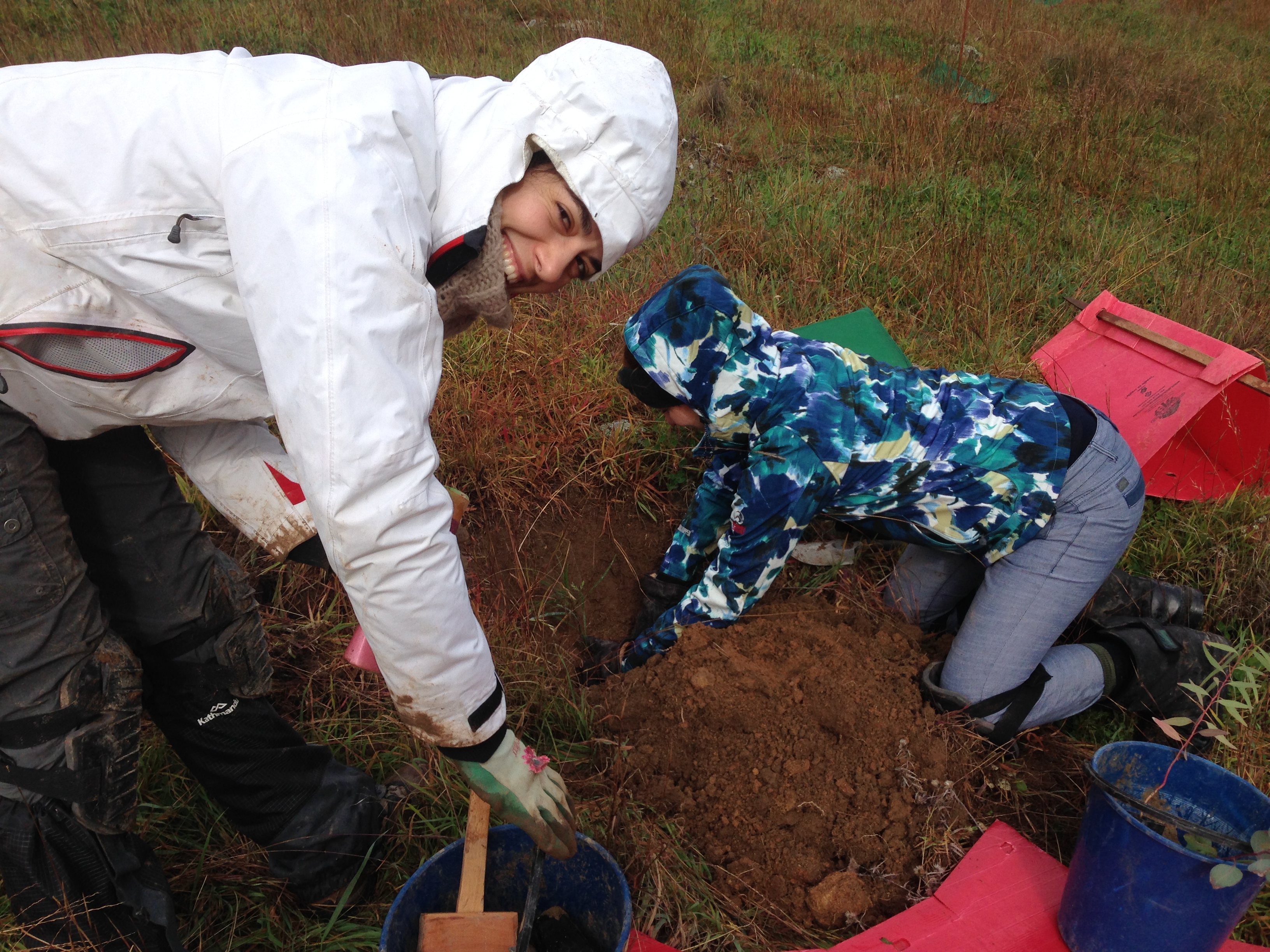 Note the flooded creek, and the bloke with a mattock (Craig) digging hole after hole, after hole.