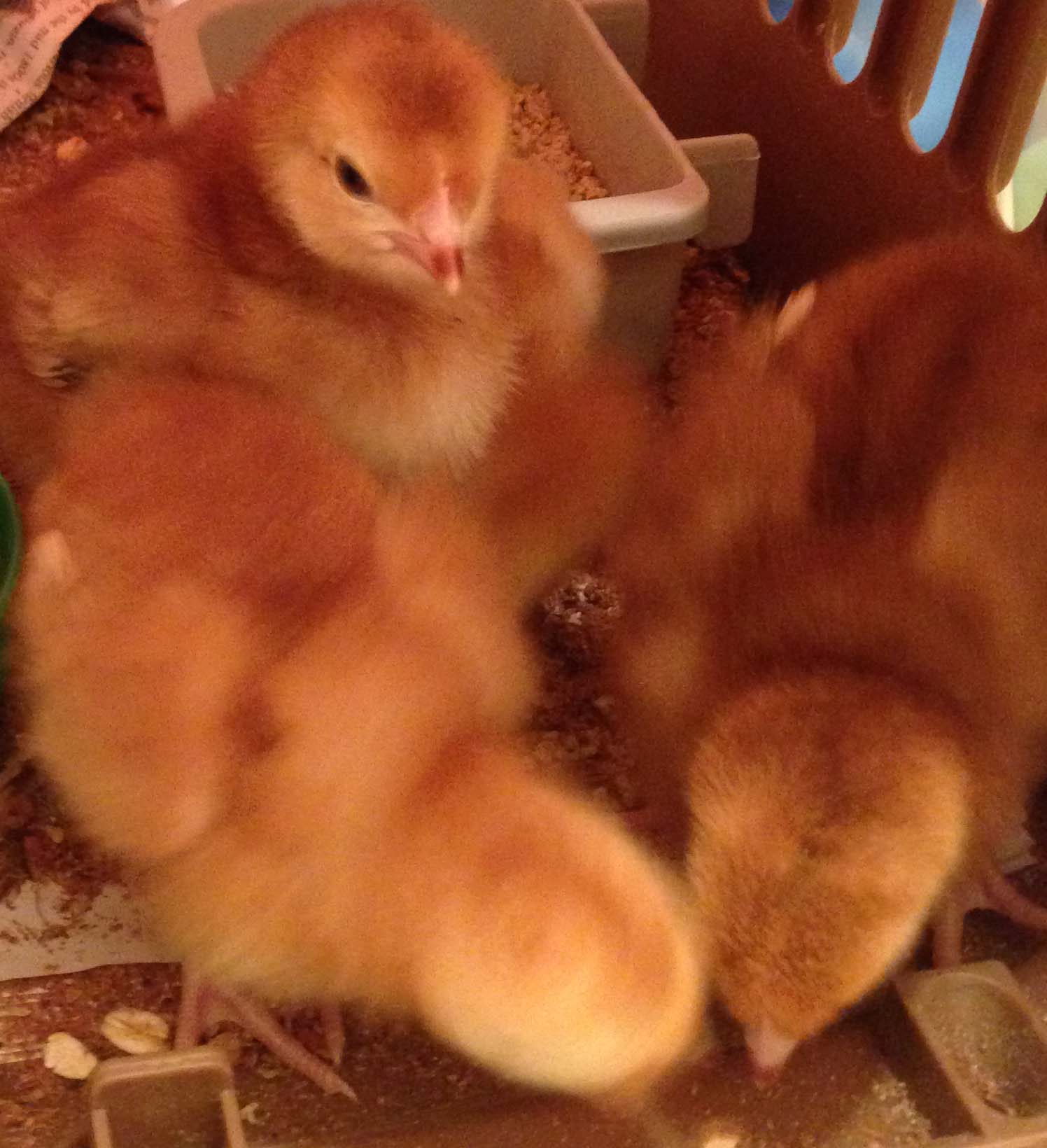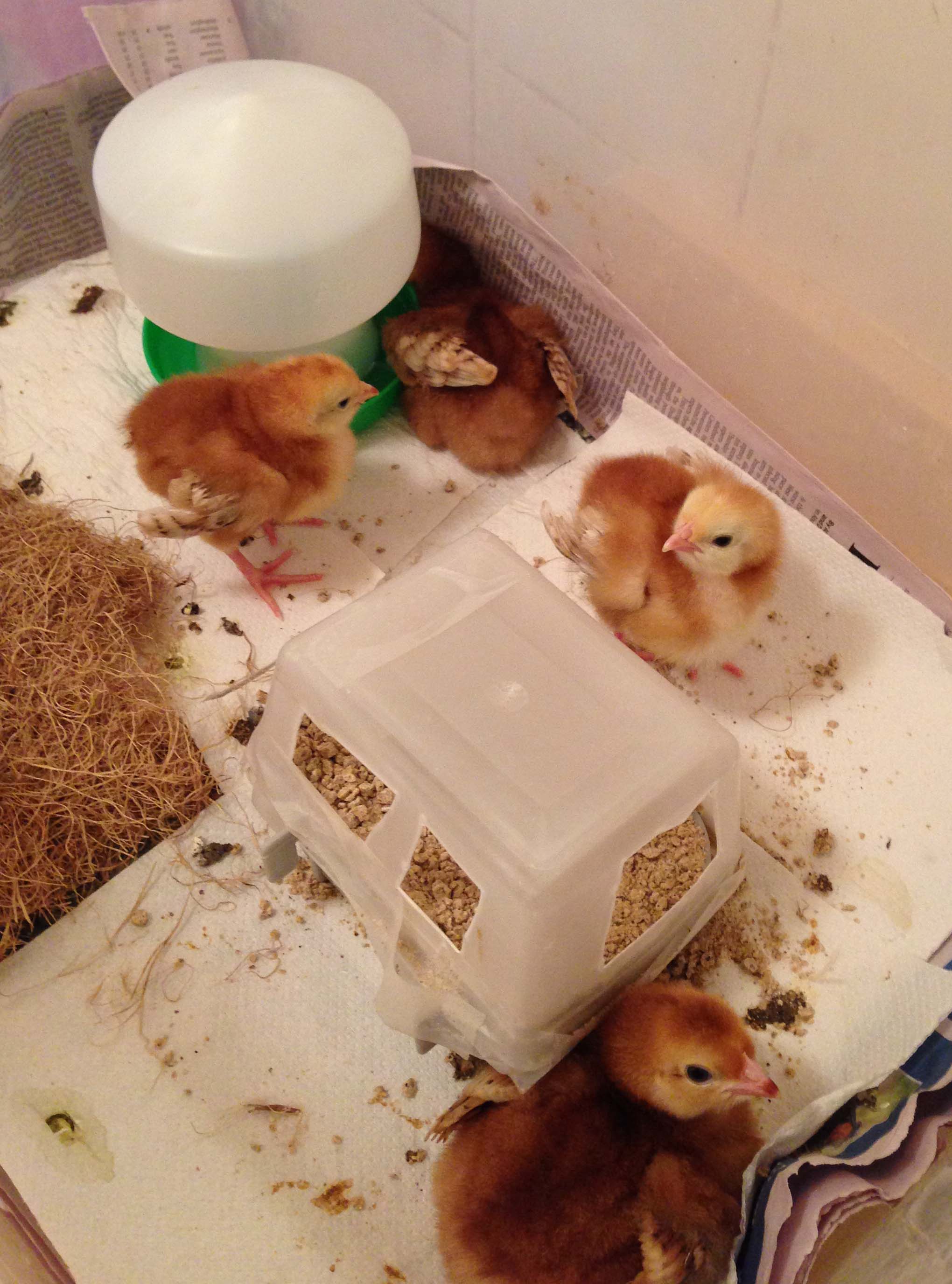 One of the chicks likes to squeeze itself in and use it as a sort of nesting box. I’m hoping it will grow out of it soon.