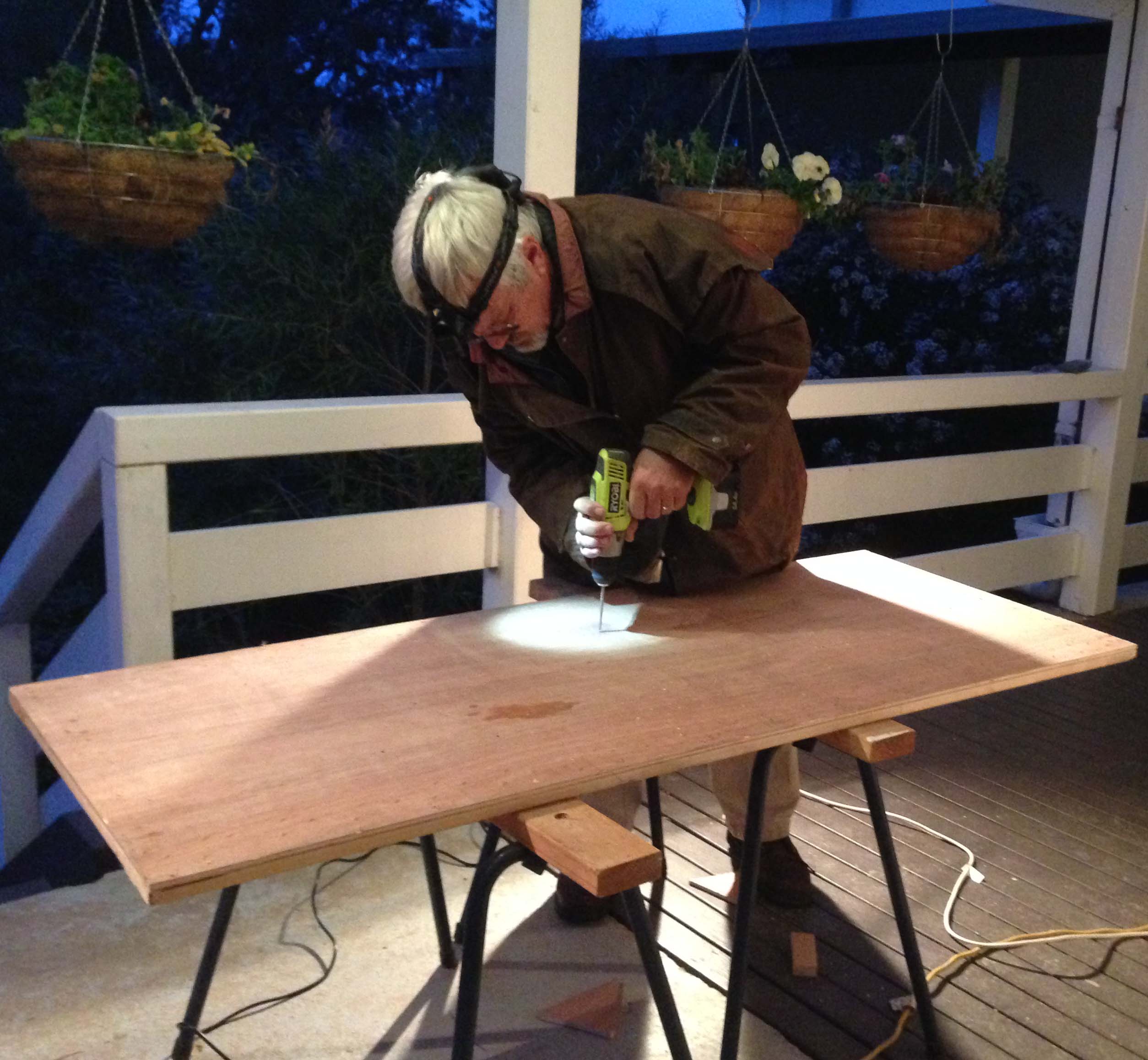 After much complaining Craig’s done a fantastic job. It’s great to have a workshop and some decent tools again. Thanks to my brother Andrew, the workshop even has a window. Not that we can fit this coop into it. It has to go onto the verandah, holding place for all our household excess.