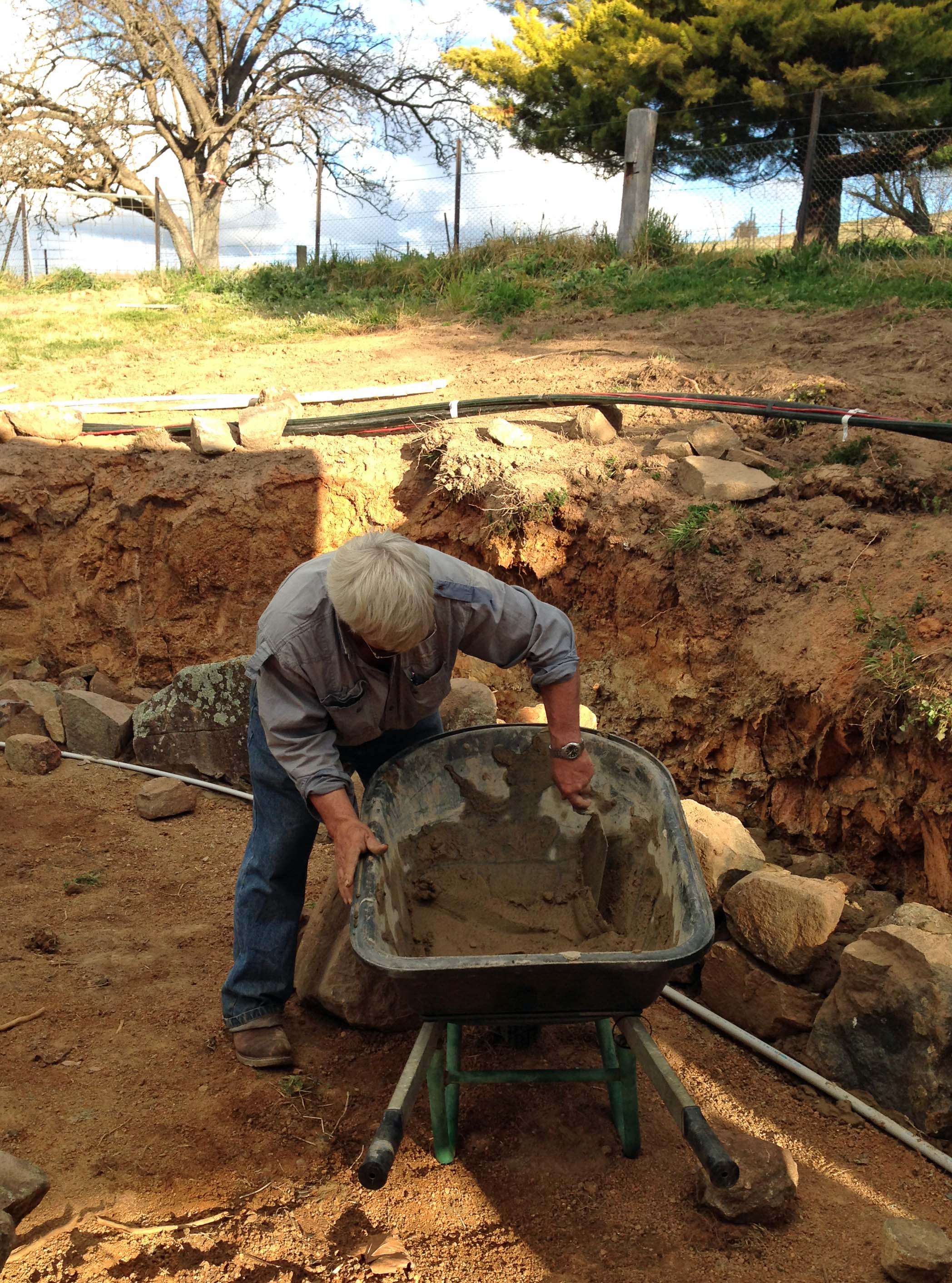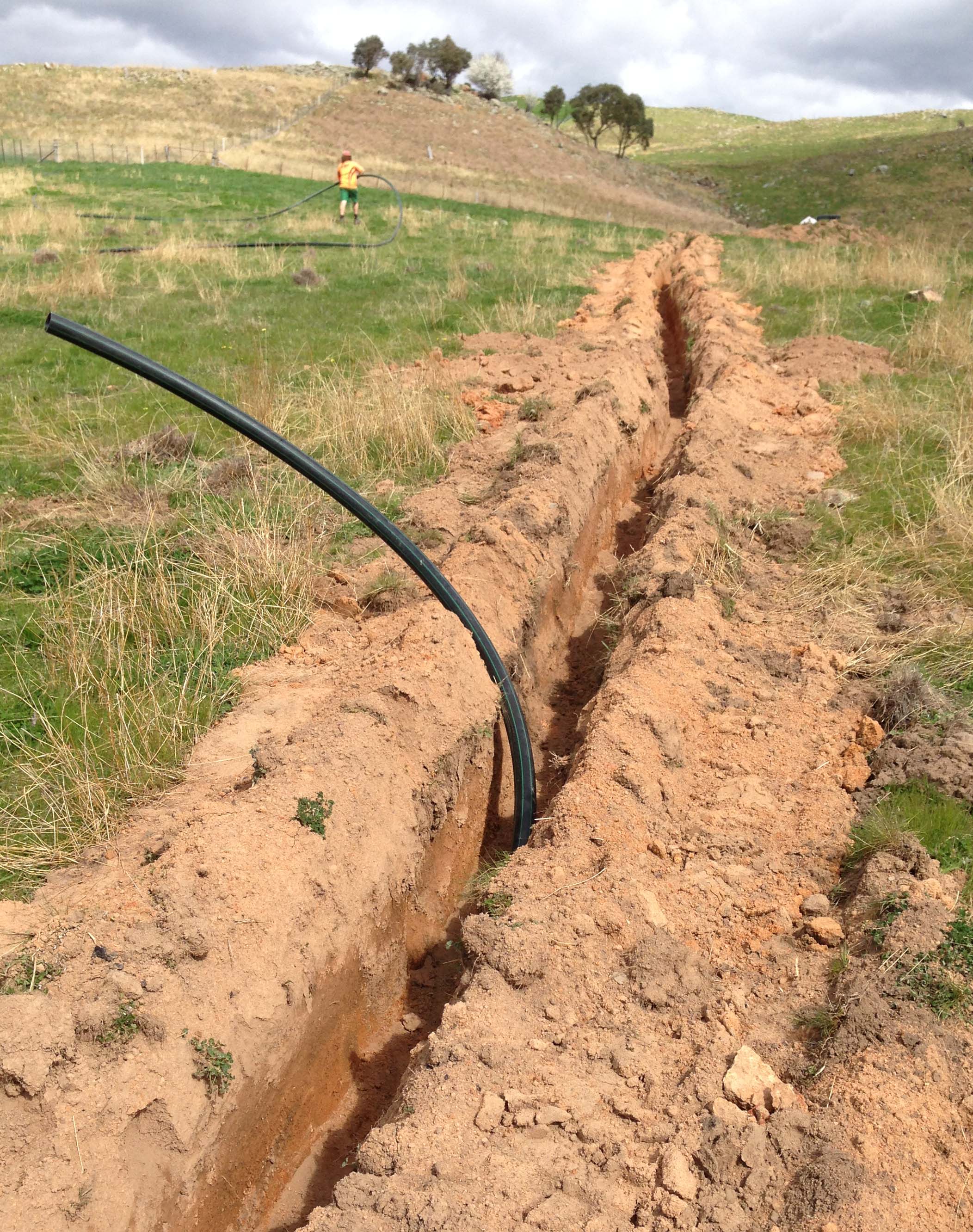 The new gravity feed system had to be connected to the existing garden pump from the river through a 200 metre trench, then the down line spread out to taps around the vegie garden and all the way down to the stock troughs in the two paddocks around the house.