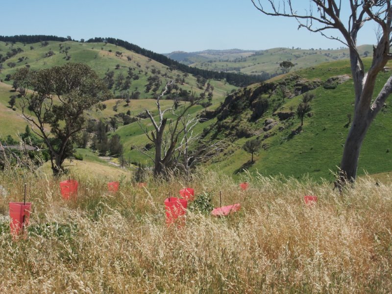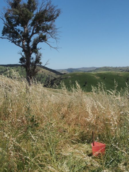 I was a bit mortified, though, that when I took him to show off some of my revegetation areas, the new trees had mostly disappeared under a huge crop of wild oats and other weeds.