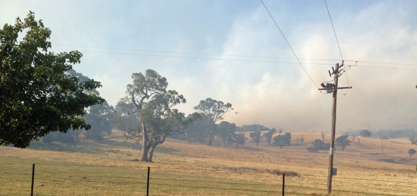Our neighbour Lea called and said “If the smoke’s thick over your house, you should leave.  You’ve only got one way out. ” She thought the fire had crossed Mountain Creek Road (it had).  That put it only four or five kilometres away, with a forty kilometre per hour wind.