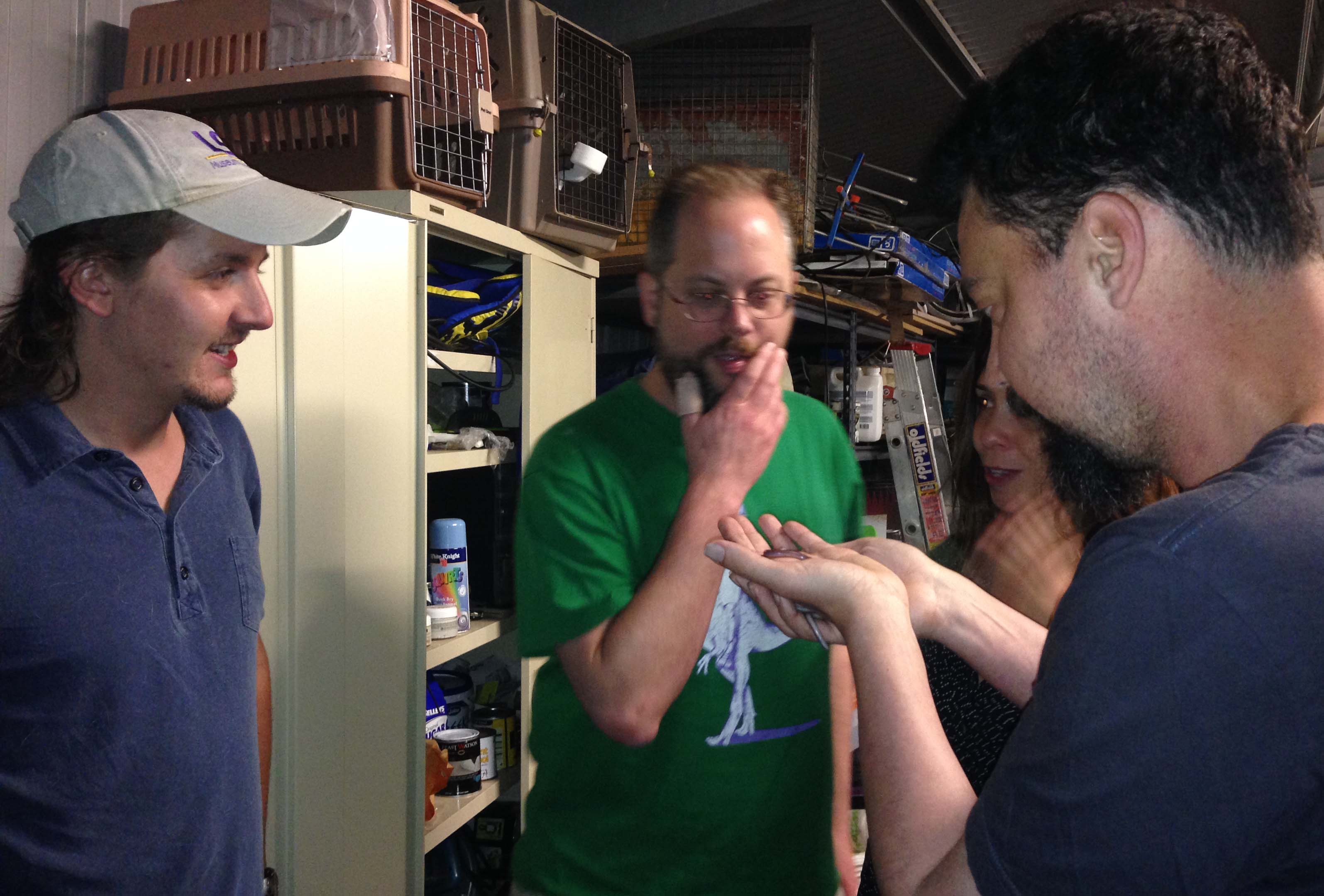 Then it was passed around in the light of the cluttered garage so everyone could have a good look and feel the smoothness of the shiny skin.