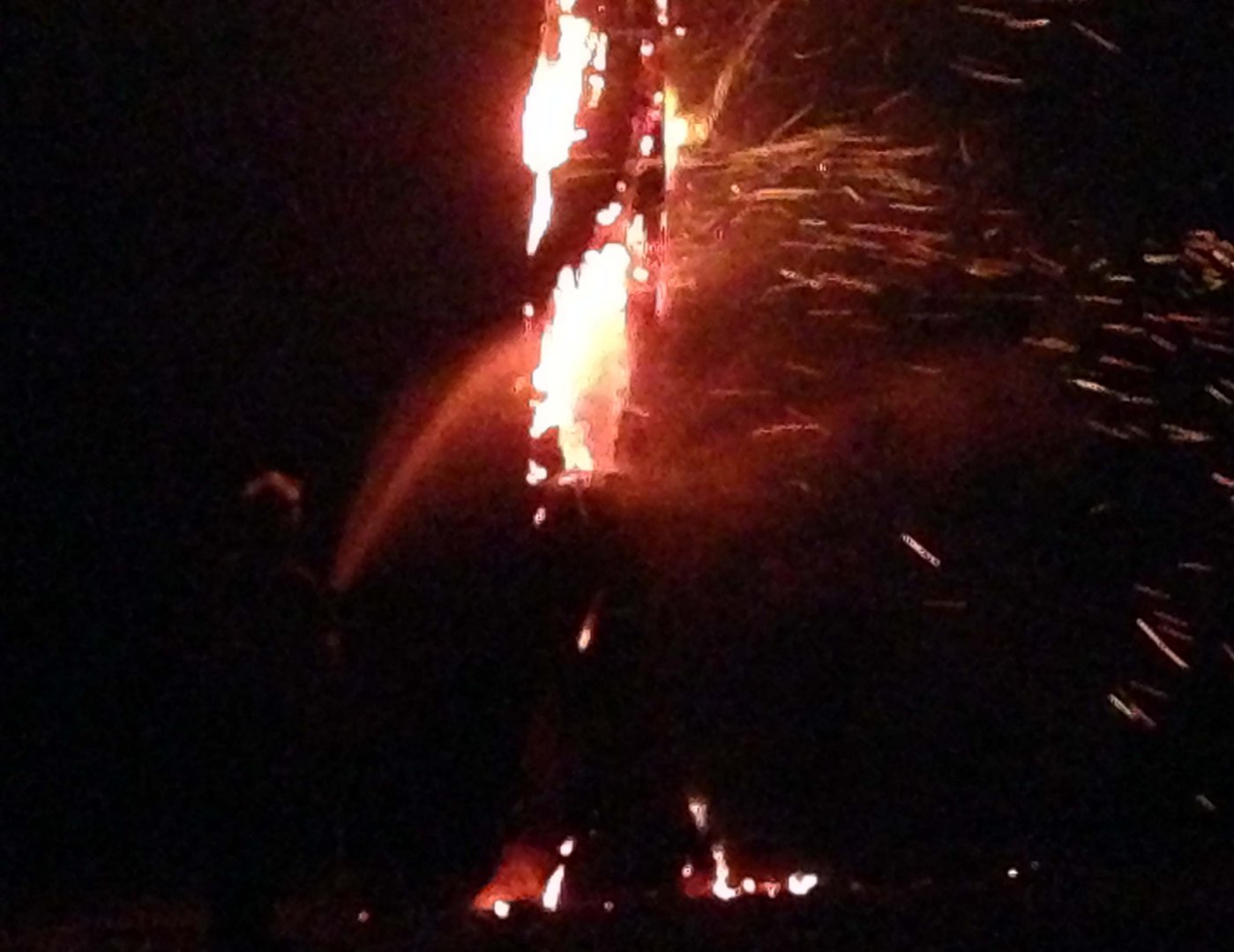 Then followed an hour with chains trying to pull the flaming top of the tree off so that Frank could hose more water and fire retardant foam down inside it. “Foam’s really good on burning wood” Steve explained.