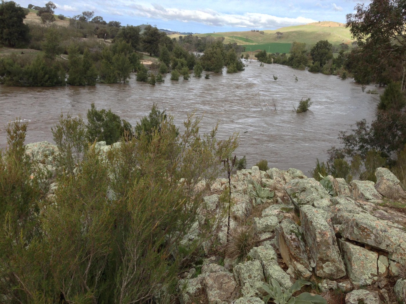 The creek comes up quickly, and goes down just as fast, but usually timed perfectly so that the river crossing is flooded as soon as the creek is clear. That means a long journey to a higher bridge at Taemas or Cotter, doubling our travel time into Canberra. The Murrumbidgee in this condition is nothing to mess with.