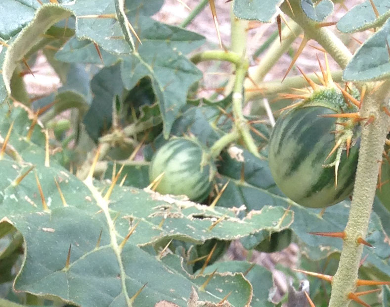 There it was, spiky leaves, purple flowers, big round seeds and all.  “Local native. Uncommon”. Narrawa Burr (solanum cinereum), a relative of tomatoes and one of the prolific nightshades.