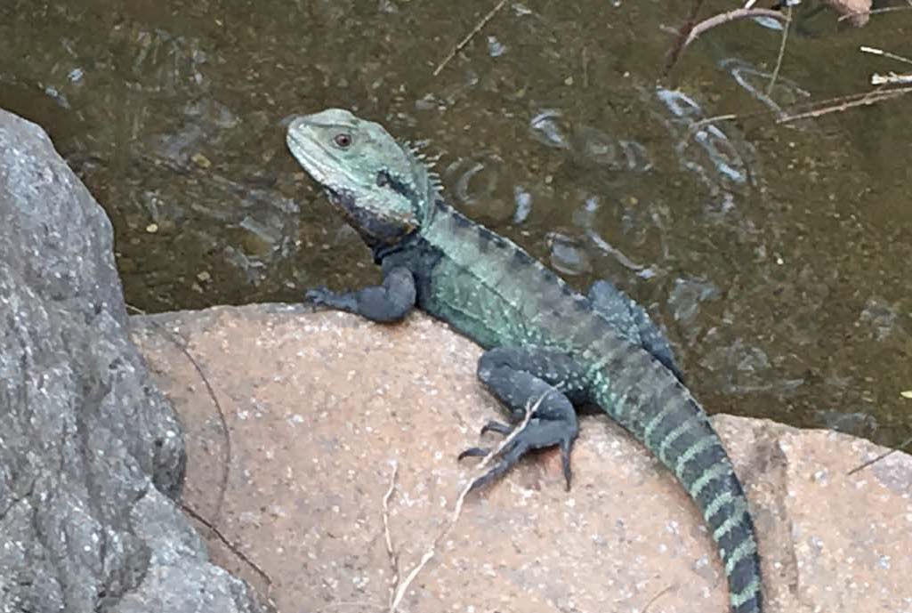Yesterday, Matthew Kent and I saw a smaller water dragon without the green colouring while we were testing the creek for Waterwatch. (By the water was the best place to be on such a hot day. )