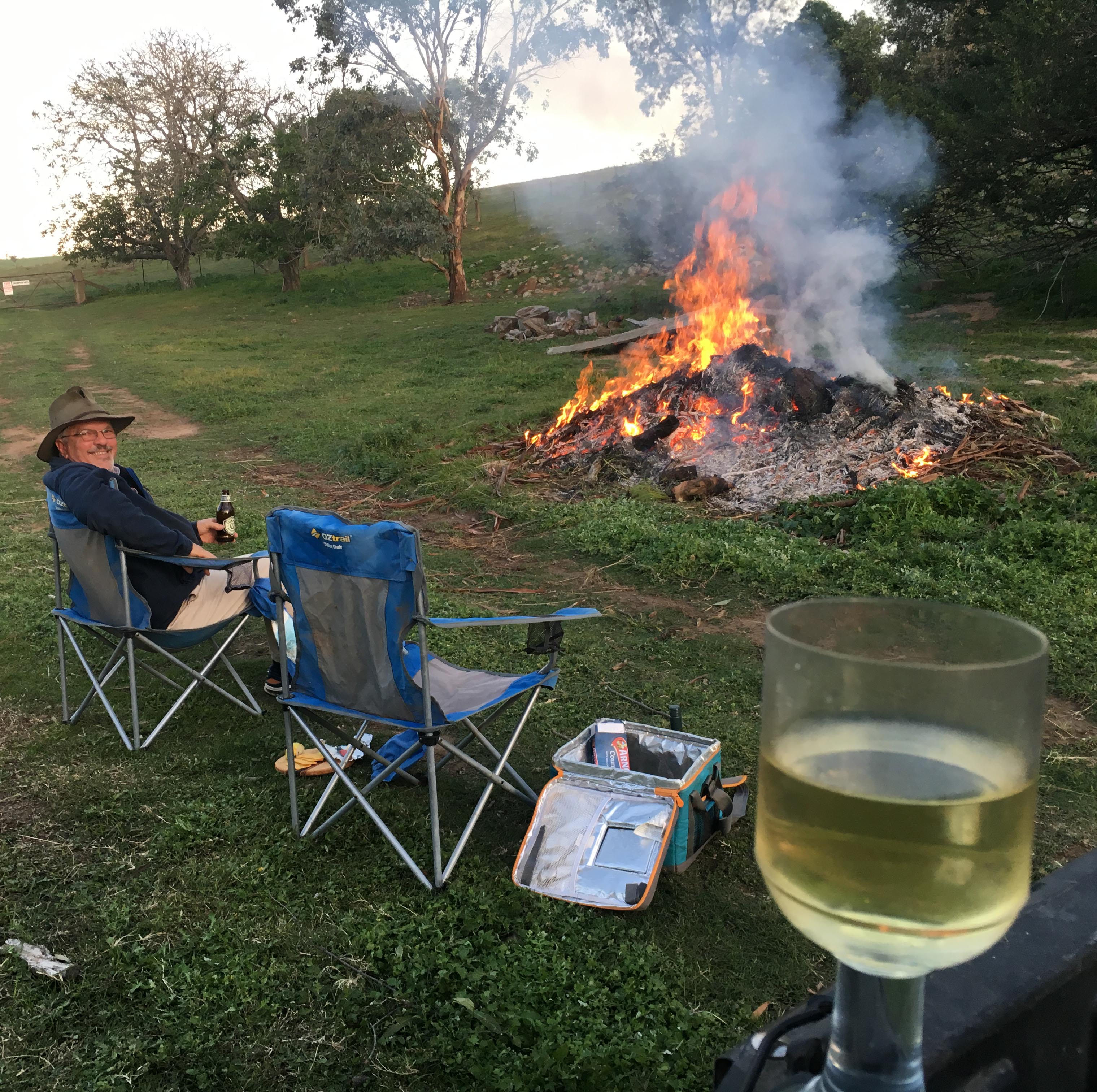 Among our successes was the spot-spray treatment of African Lovegrass where it is invading from next door’s paddocks into our Cockatoo 2 plot. We cut and removed the seed heads, marked and sprayed the tussocks with glyphosate in the autumn, and came back in the spring to find all of them gone. Yay. We had a bonfire of seedheads and other weeds, with a glass of wine for essential relaxation.
