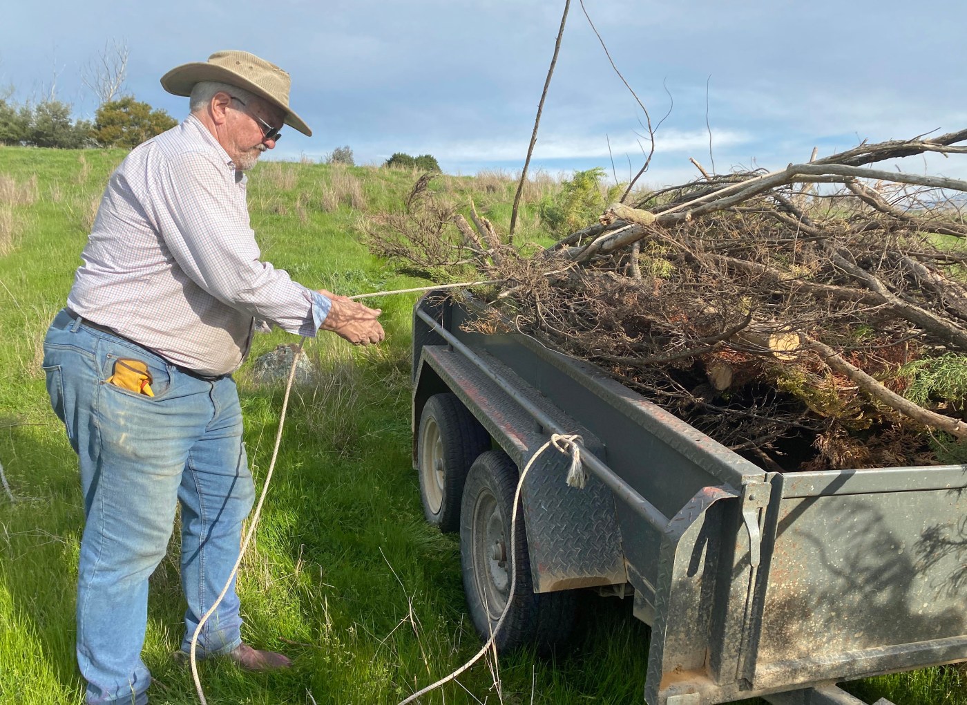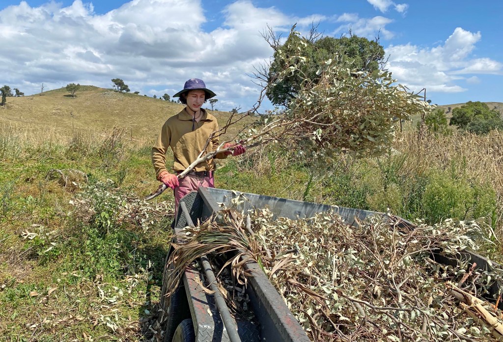 A cunning plan, we thought, was to chop it and throw it over the fence into the paddock next door. That paddock actually belongs to our neighbour so we had to get permission to use it to come around with the trailer and pick up the mountain of branches.