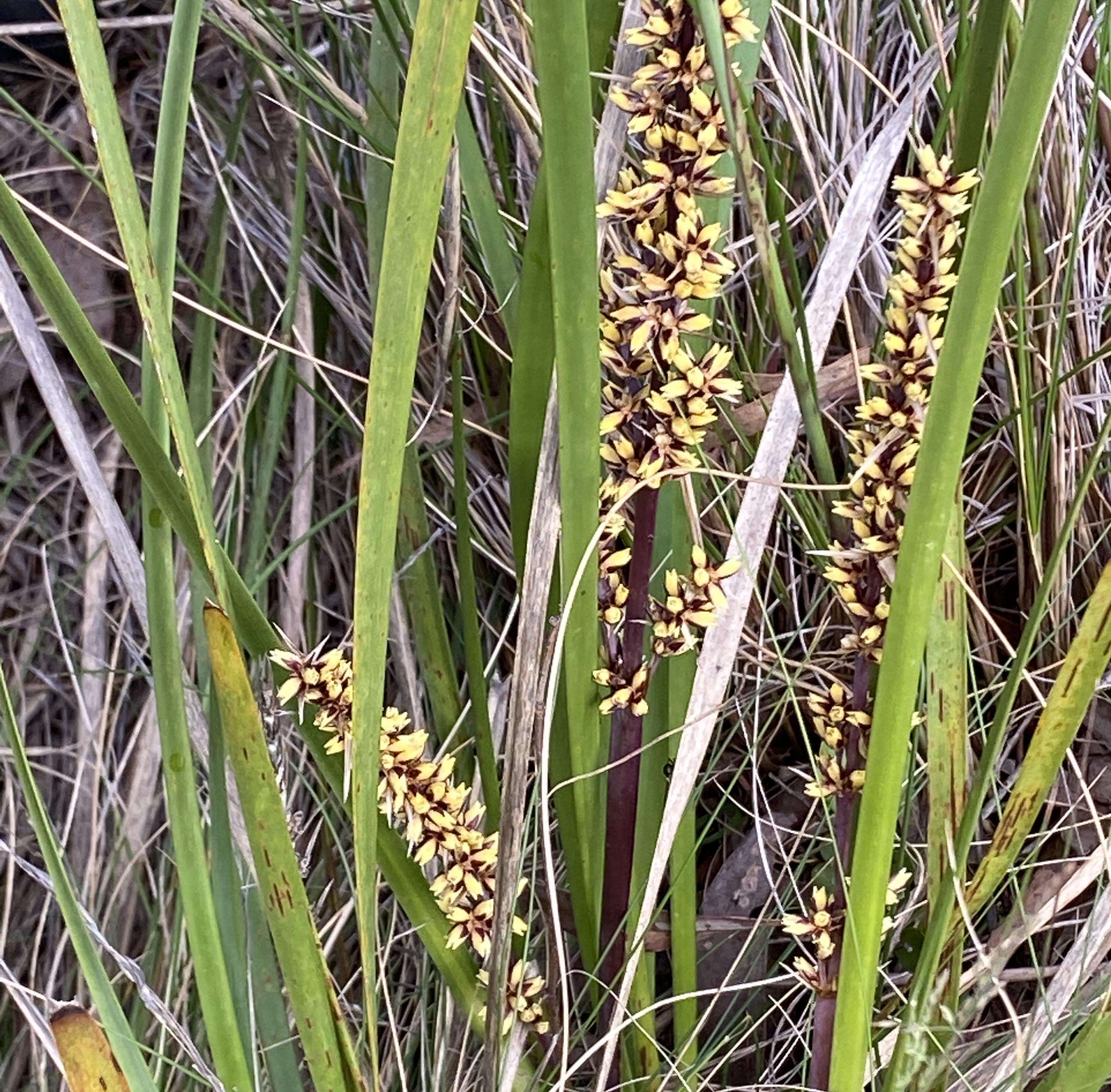 I got to see flowers of the lomandra filiformis (which I know we have around the rocks in the Cockatoo 2 area) as well as the larger lomandra longifolia which does a sterling job in wet areas holding back erosion.
