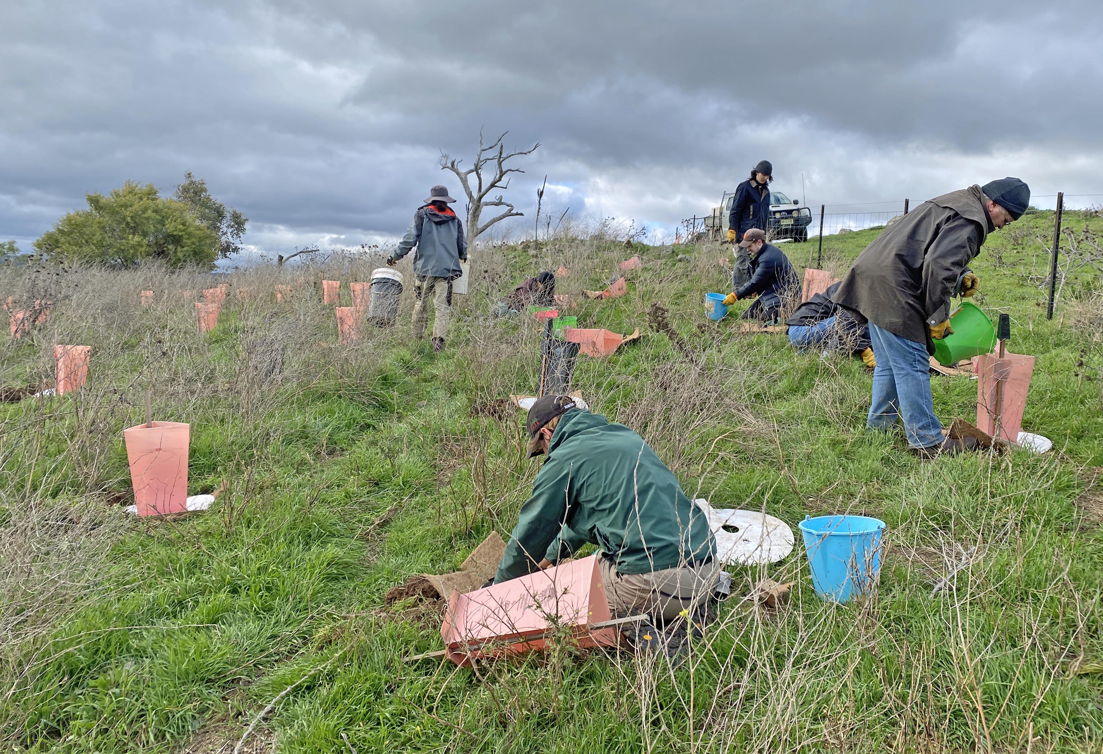 The planting team didn’t like the rocks as much, but gamely did the job.