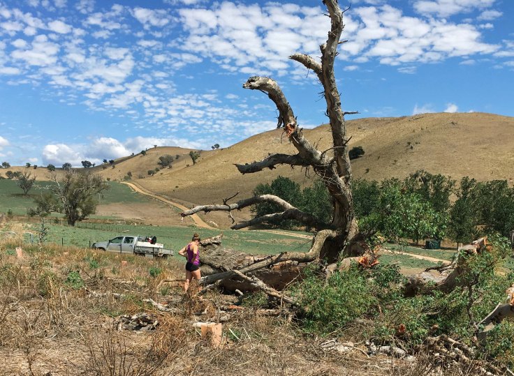 I was quite annoyed when one of our remnant trees was blown down in a freak storm (see Death of a Giant). I’d hoped we could save it from a slow dieback by fencing and planting around it. Of the three trees we did that for, it was the healthiest. But no, the wind screwed it out of the ground, literally.