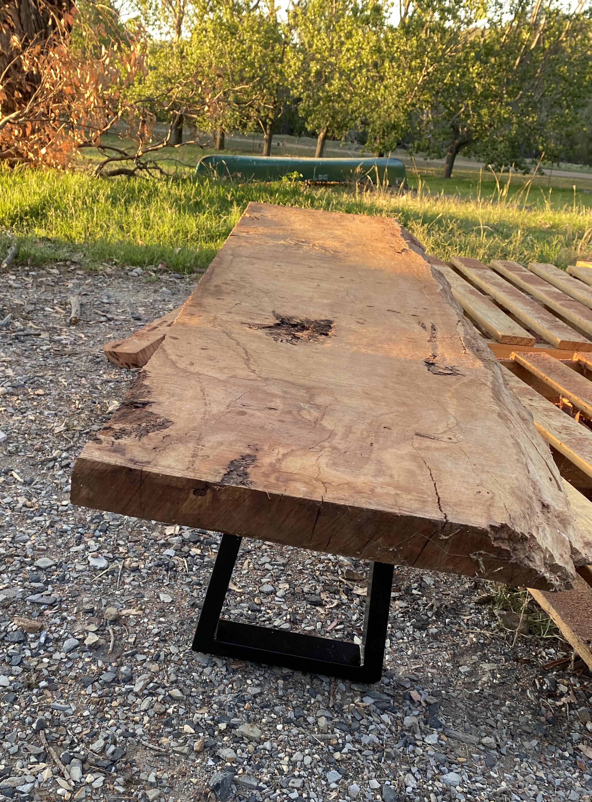 One slab went to Queensland and became a beautiful table. It was too short for the original idea of a kitchen island, and had to have an extra piece of a contrasting timber added in the middle to give it table width, but it looks gorgeous.
