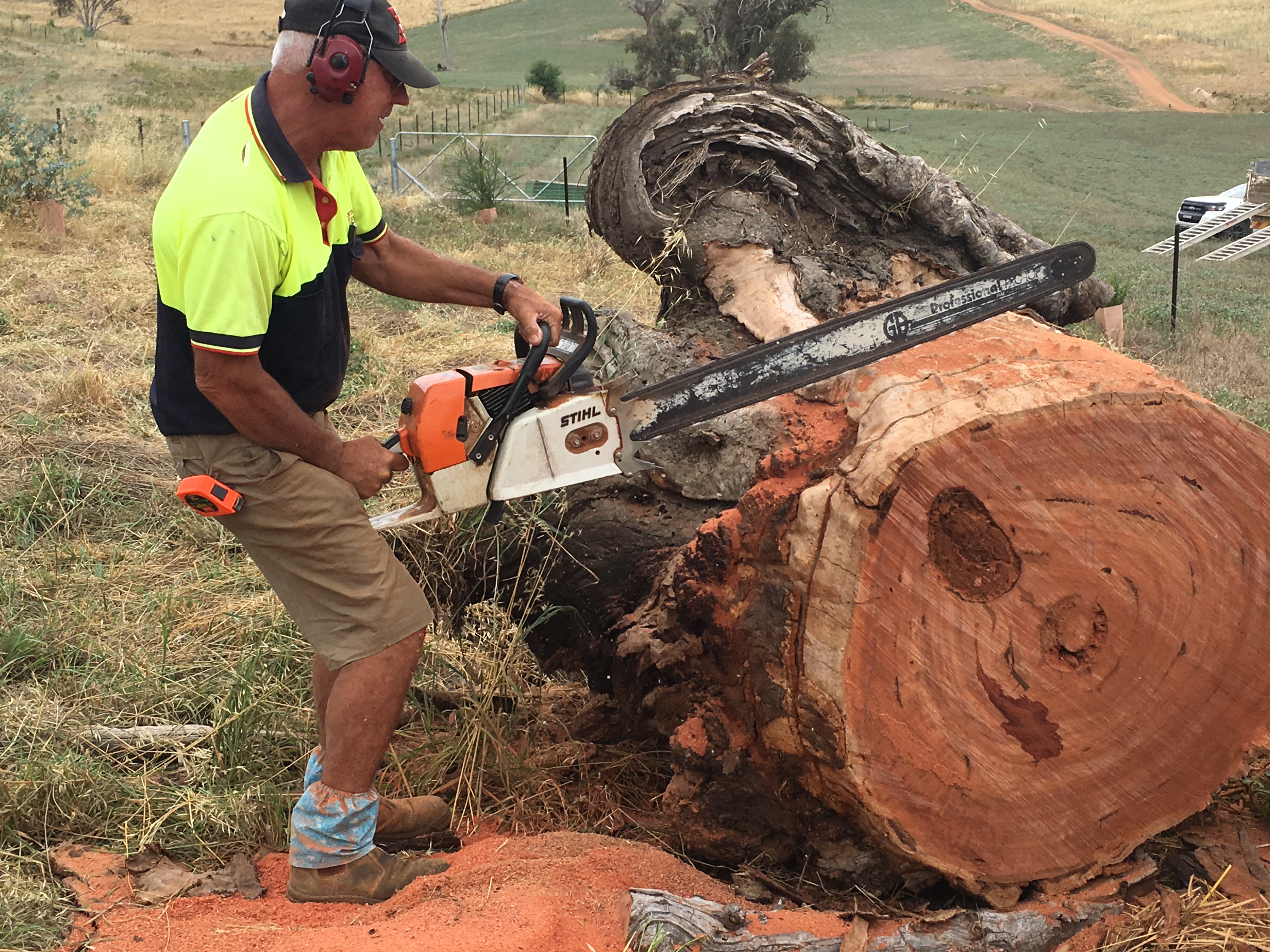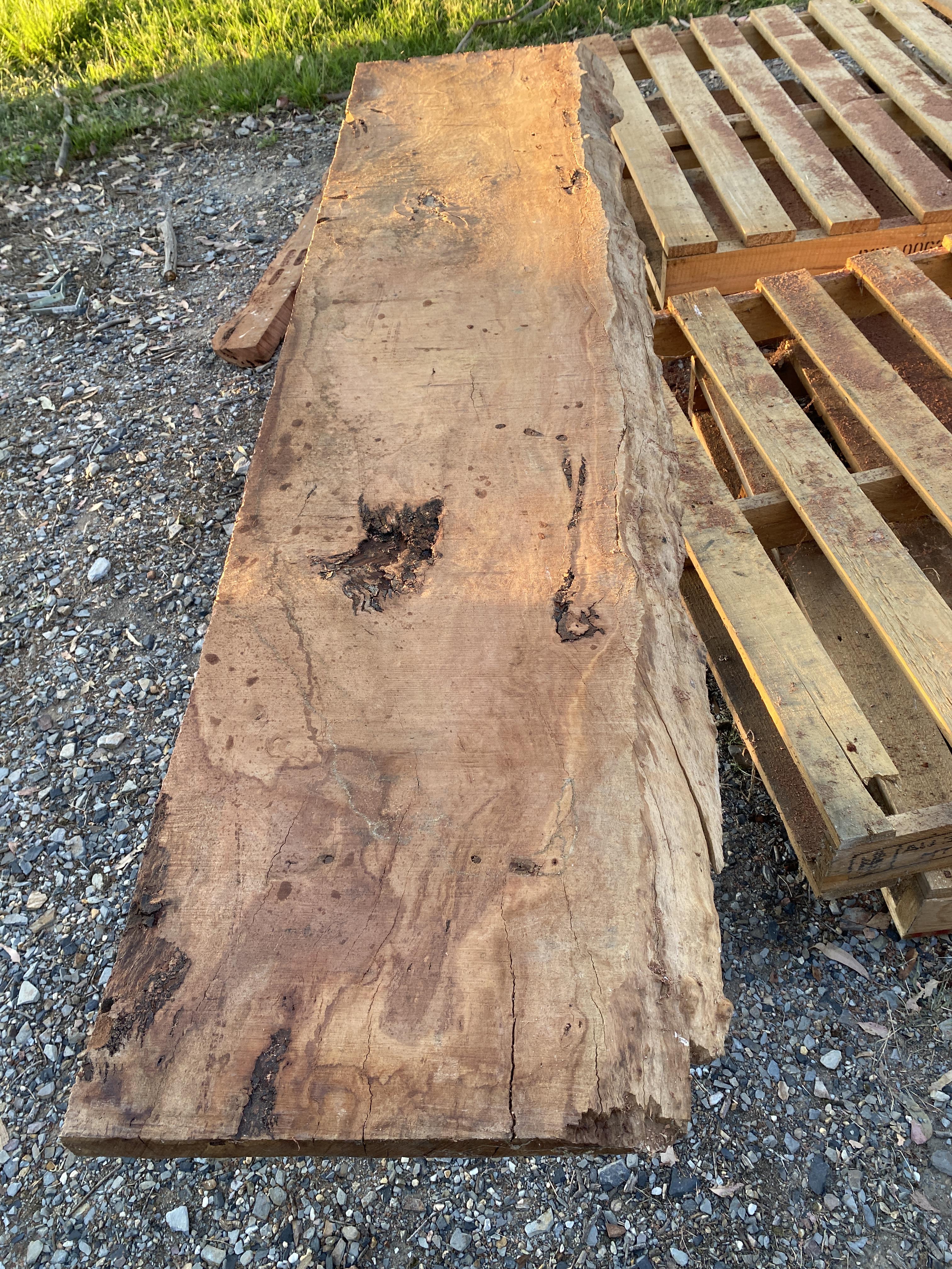 We called a neighbour, Chris, who had a portable sawmill, to see if we could make something of the main trunk. He identified the tree as red box (eucalyptus polyanthemos), which is listed as “near threatened” on the IUCN Red List in our area because of habitat fragmentation and declining remnants.