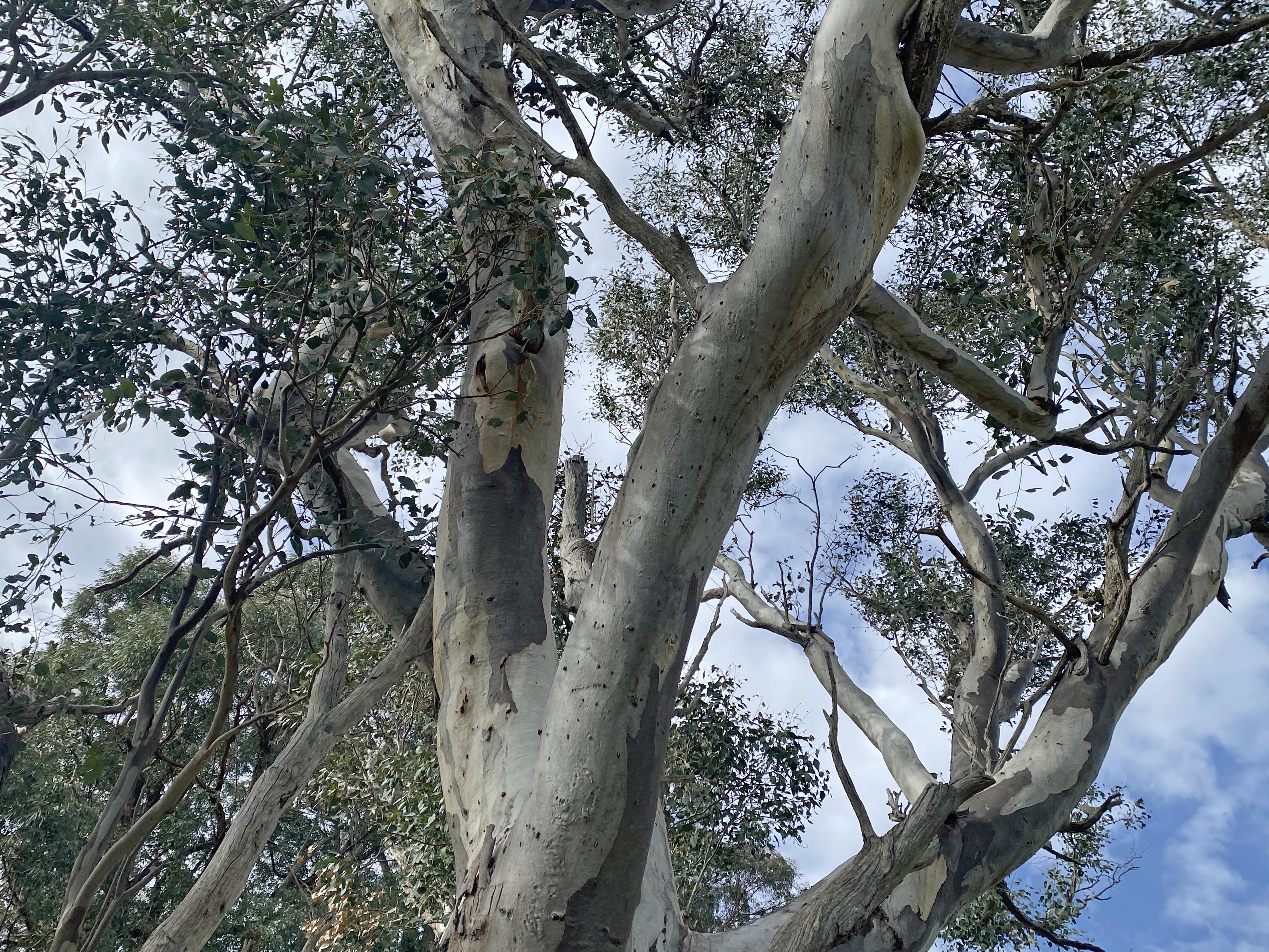 But it’s actually not a local Blakelyi or part of our local endangered Grassy Woodland species. It’s been identified as a Forest Red Gum (eucalyptus tereticornus), which is taller and not recorded in our area. It has put on some more height since Mum and Dad bought Esdale in 1979, which suggests it could possibly be younger than it looks, but anyway probably at least a hundred years old.