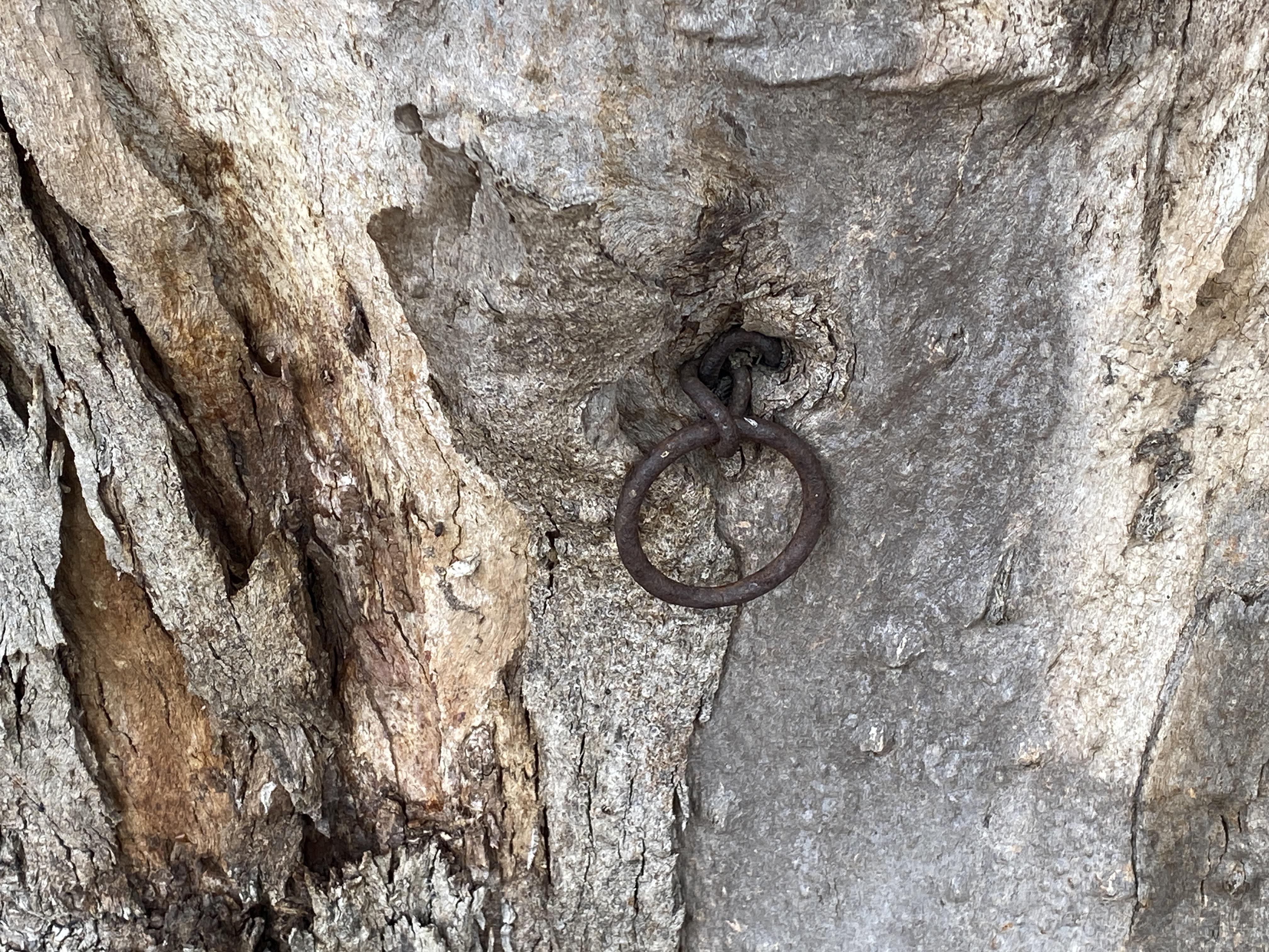 There’s another tree in the garden that looks old, and has rings driven into it for tying up your horses when you come to visit, which are well embedded in the surface, suggesting age.