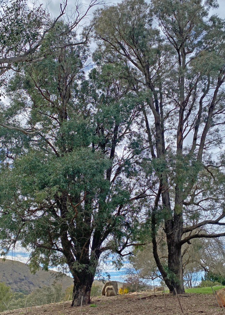 Some types of trees I know to be much younger, particularly the ones I planted myself, or were planted by someone I know within the last fifty years. That includes the Peppermint Gums (eucalyptus Nicholi) in our lawn that were planted by my brother’s Irish girlfriend in 1985.